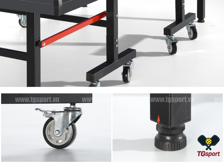 Bàn được trang bị mặt gỗ MDF dày 18mm, giúp đảm bảo độ nảy bóng đồng đều và ổn định trong quá trình chơi. Bề mặt bàn được phủ sơn chống lóa màu xanh, giúp người chơi dễ quan sát bóng khi thi đấu hoặc luyện tập.