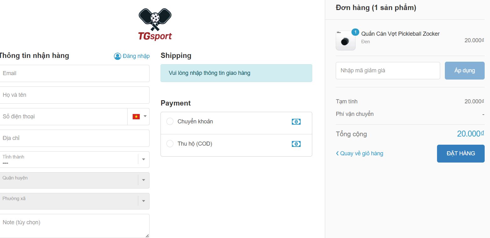 Bạn đang quan tâm đến các sản phẩm thể thao tại TGsport.vn nhưng chưa biết cách mua hàng? Chúng tôi sẽ hướng dẫn bạn chi tiết từng bước đặt hàng, thanh toán và nhận hàng một cách dễ dàng, nhanh chóng và tiện lợi dù bạn ở bất kỳ đâu trên toàn quốc.
