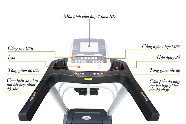 Máy chạy bộ điện HQ-223 được thiết kế đa chức năng, hiện đại với HDH Android + màn hình cảm ứng và sử dụng động cơ DC có công suất 3.0 Hp mạnh mẽ. Thiết kế chi tiết máy chạy HQ-223 gồm: