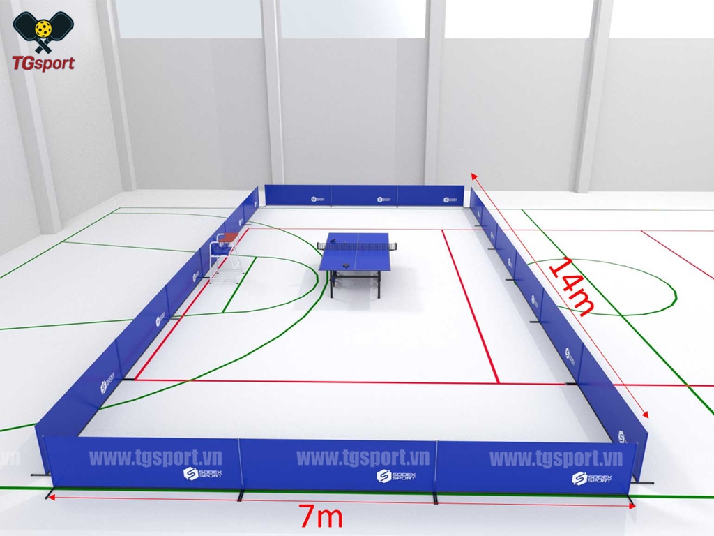 Thông thường, ring chắn bóng có kích thước khoảng 1.0 – 2.0 m chiều dài và khoảng 0.7 m chiều cao, phù hợp để đặt quanh bàn bóng bàn nhằm giữ bóng trong phạm vi sân tập.